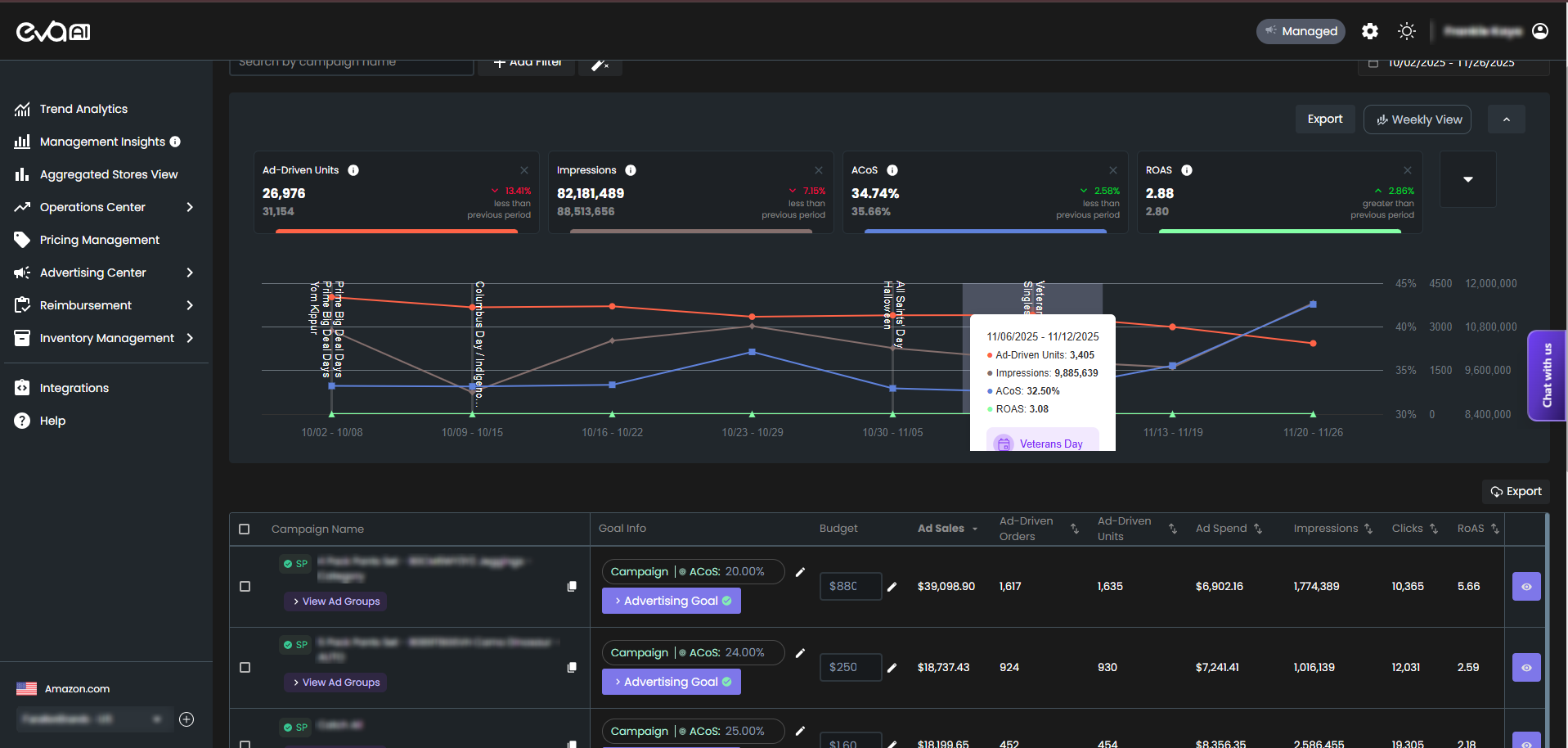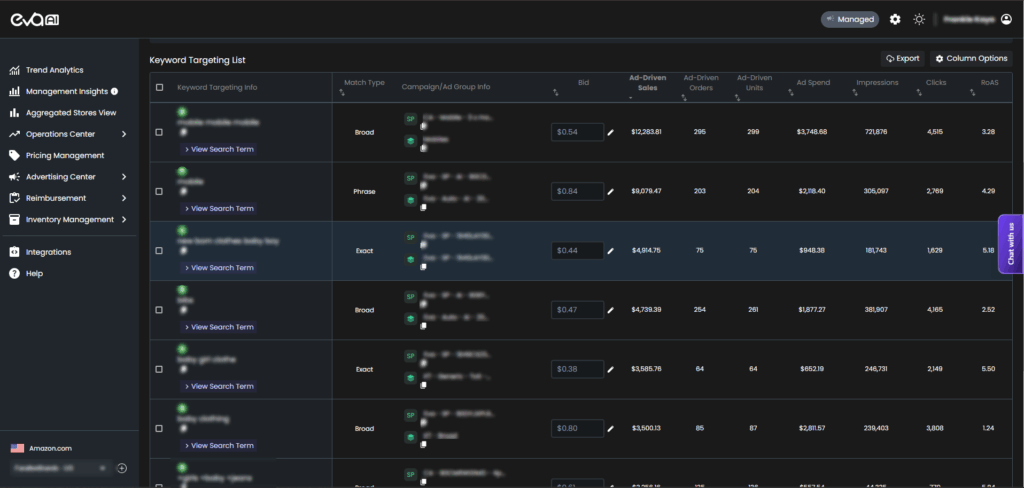 Your AI works the way you want it to. Eva uses an intelligent learning system, but you define the rules and boundaries that shape its behavior. For Campaign Discovery, you set the custom thresholds for what qualifies as an opportunity (e.g., minimum sales, ROAS, or conversion rate). This gives you the ability to build your own AI system that follows your strategy with complete accuracy. You keep control while the platform handles the execution.